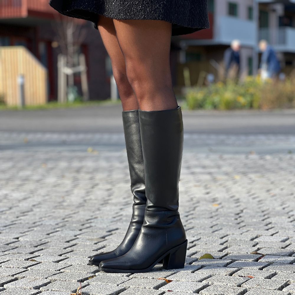 Giovanna er en klassisk, tidløs skinnstøvlett som passer til ethvert antrekk. Denne modellen bør finnes i enhver garderobe! Høyt skaft, trendy firkantet tupp og glidelås på innsiden. En veldig komfortabel og god støvlett å gå med.