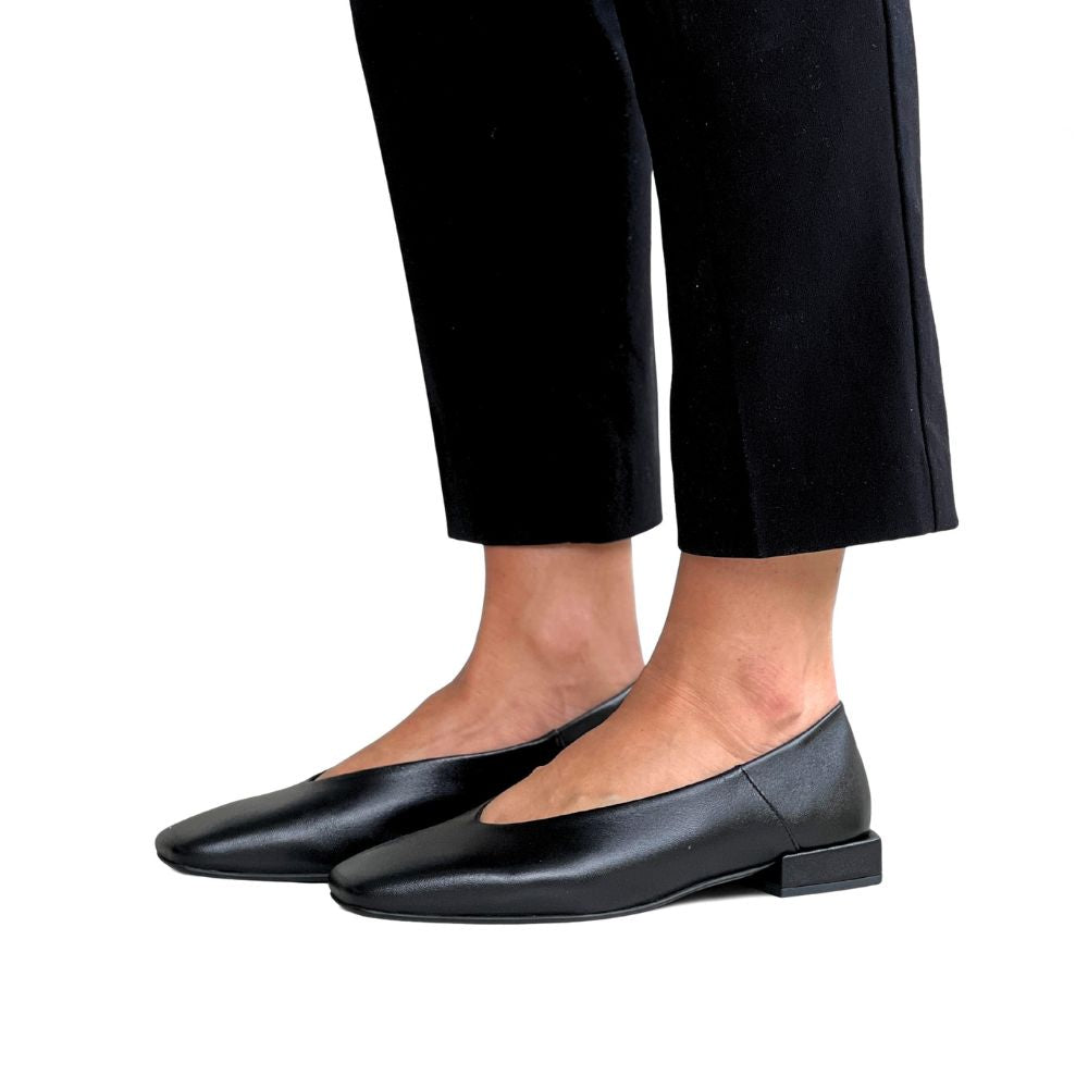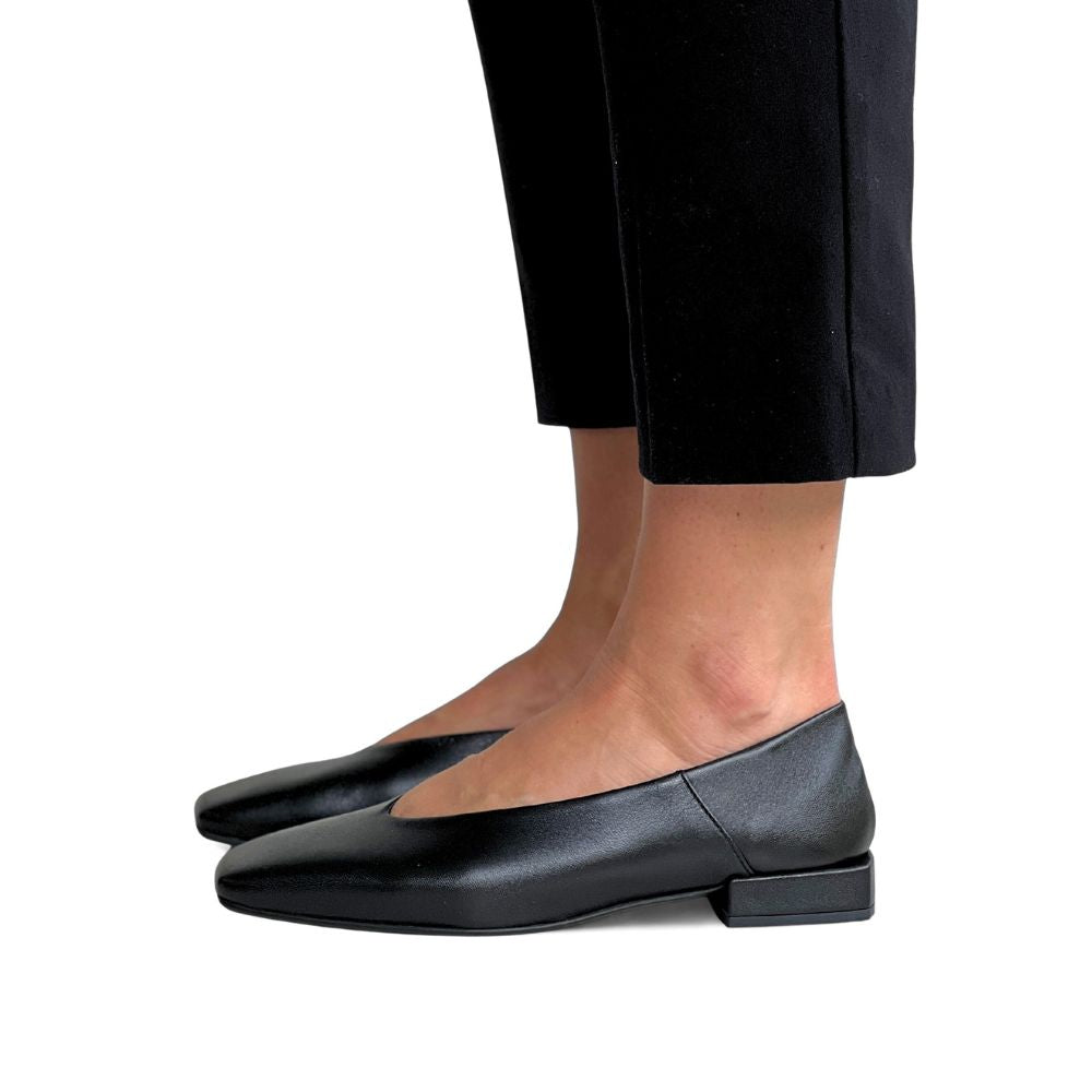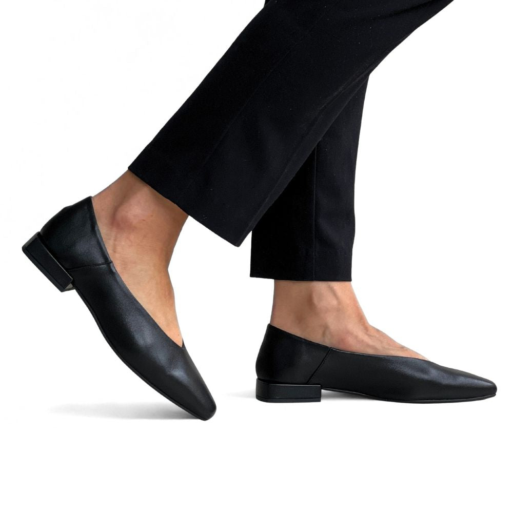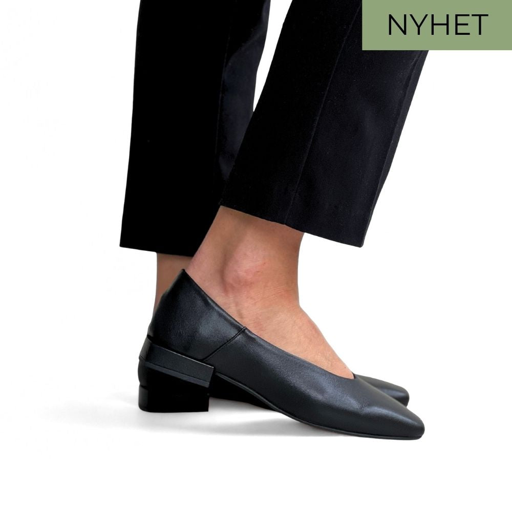 Laura er en elegant og klassisk sort ballerina med slip-on design. Ballerinaskoen har firkantet tå og en stilig firkantet blokkhæl. Den myke skinnkvaliteten former seg fint etter foten og gjør dem behagelige å bruke gjennom hele dagen.